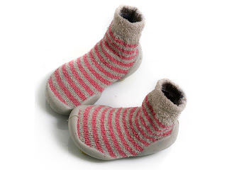 It is getting cooler and the tiles in the house can leave little toes frozen...I think Miss M would do quite well in these and at the same time give her foot a bit of support. Another plus is that they are really cute.